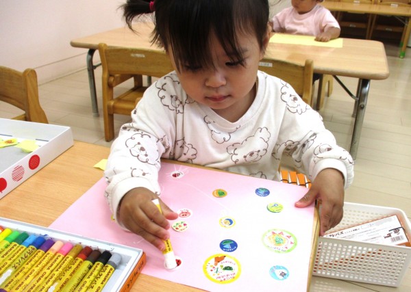 シールの上からクレヨンで描いちゃう子もいました!ナイスアイディアです!