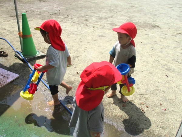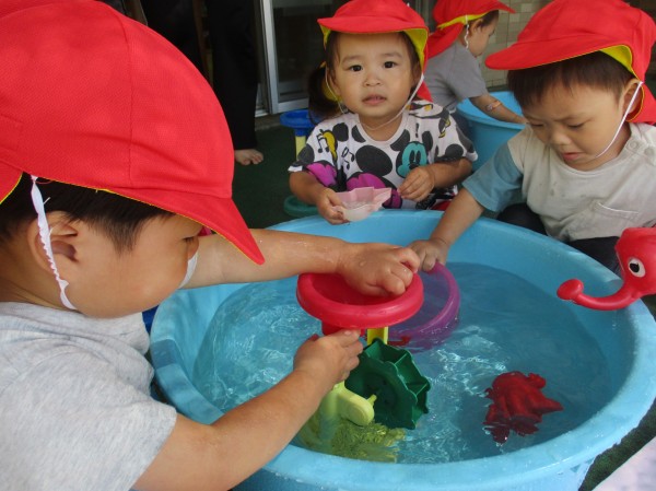 こどもの家・志木中宗岡 水遊びスタート!あひる組(1歳児)