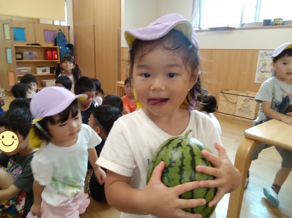保育園にスイカを持って帰りました。