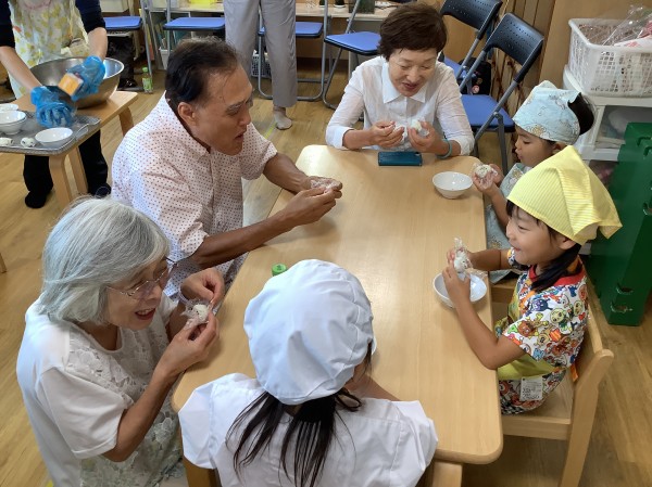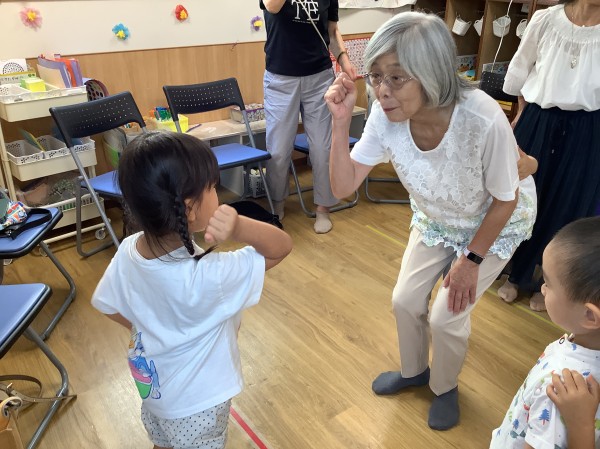 最初は少し緊張気味のこどもたち。じっとおじいちゃん・おばあちゃんの方を見つめていましたが、次第に雰囲気にも慣れ、楽しそうに過ごしていました。