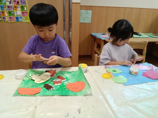 海や森の生き物たちを個人台紙に貼り付ける制作をしました。