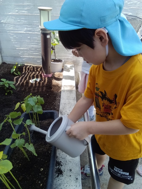 今回は、4月から行っている5歳児ぞう組の食育「野菜栽培・収穫」の様子をお伝え致します。