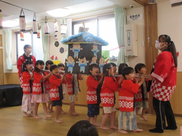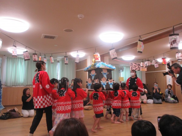 暑さに負けない元気いっぱいな「わっしょい!」の掛け声を園内に響き渡らせながら、力強く担いで歩いて見せてくれました(`・ω・´)