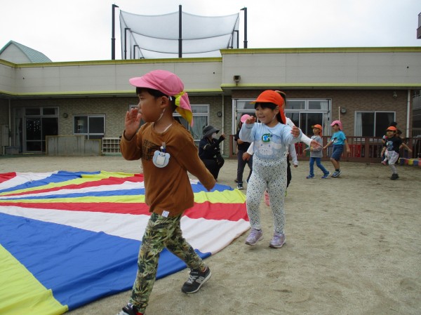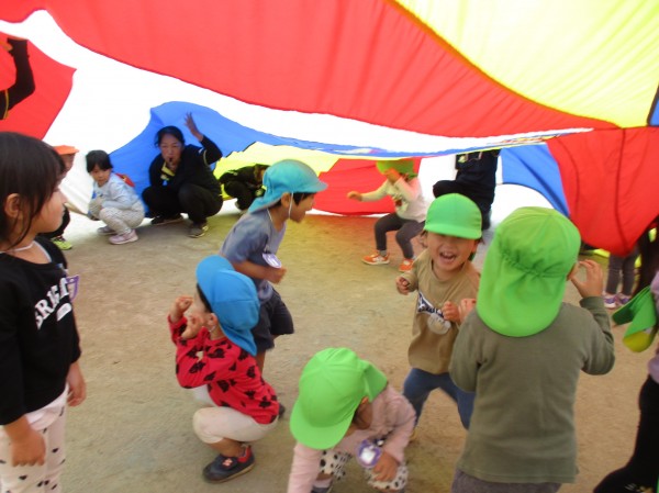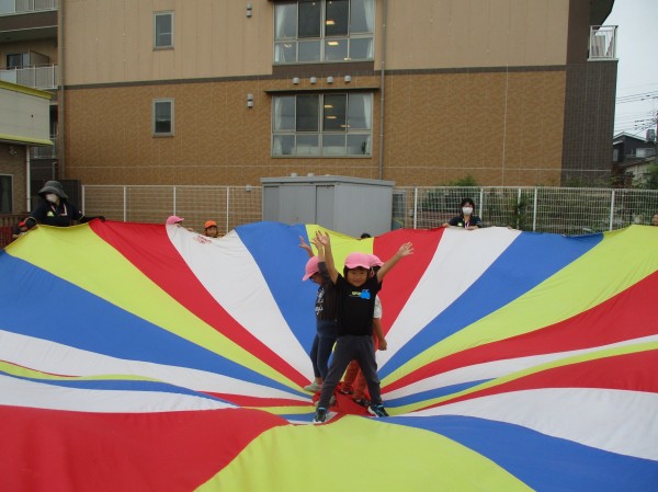 こどもの家・志木中宗岡保育園 幼児運動会ごっこ②(パラバルーン)