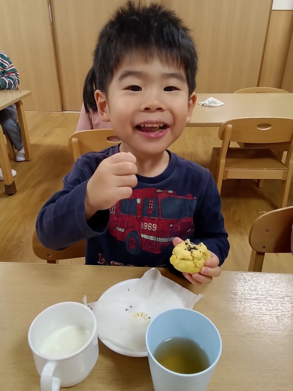 自分で作ったスイートポテトは午後おやつで食べました!(^^)!