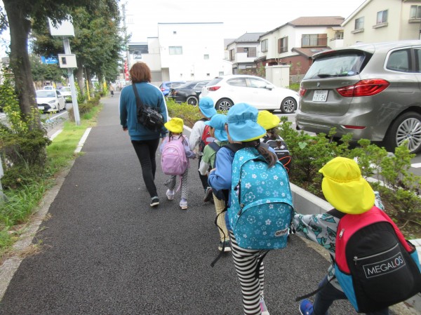 10月、片道約50分程歩いて、4歳児きりん組と5歳児ぞう組の子ども達が「行田公園」へ行ってきました。