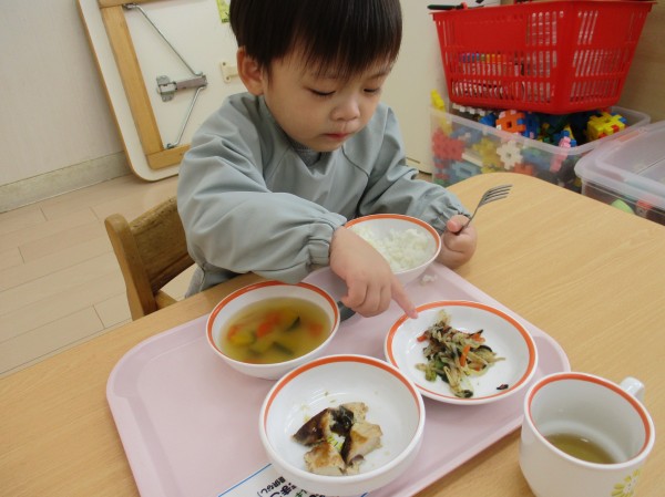 今月の食育は『小松菜ちぎり』