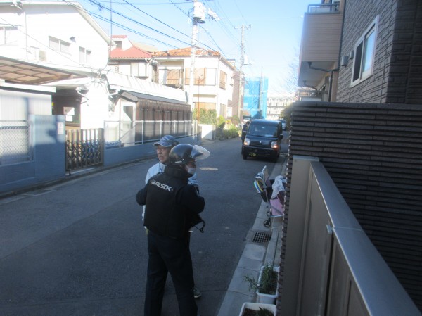 ALSOKと連携し、ALSOK警備員が駆け付けてもらいました。職員が不審者役に扮し、無理やり園内に入ろうとします。