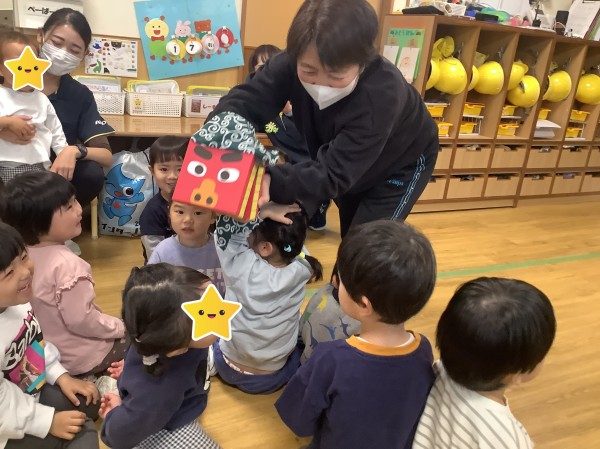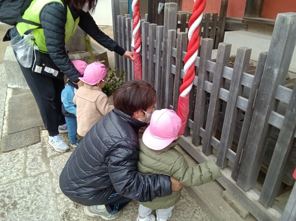 幼児クラスは浅間神社、乳児クラスは龍神社へお参りに行き、【二礼、二拍手、一礼】と言いながら参拝することができました。