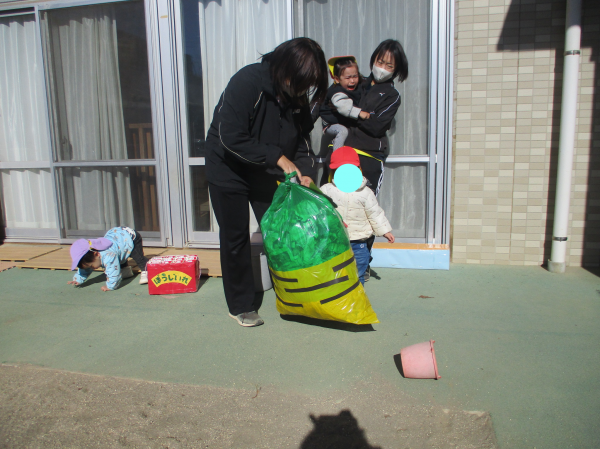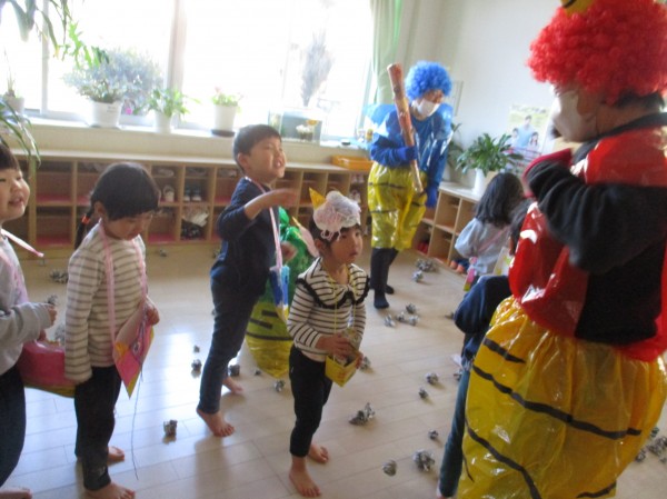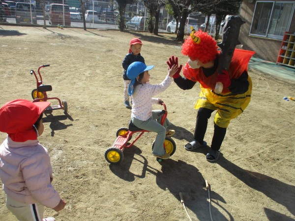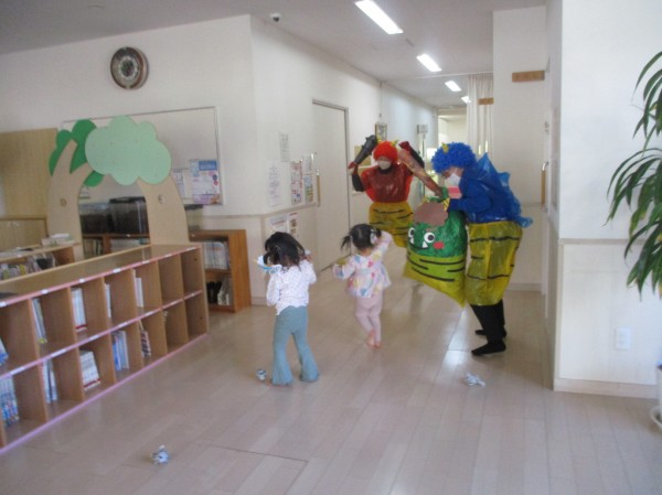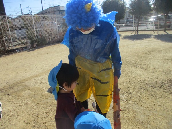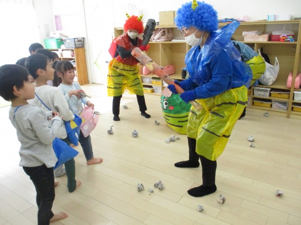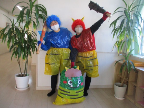 今年は感染症対策で鬼さんたちが各クラスを回ります。