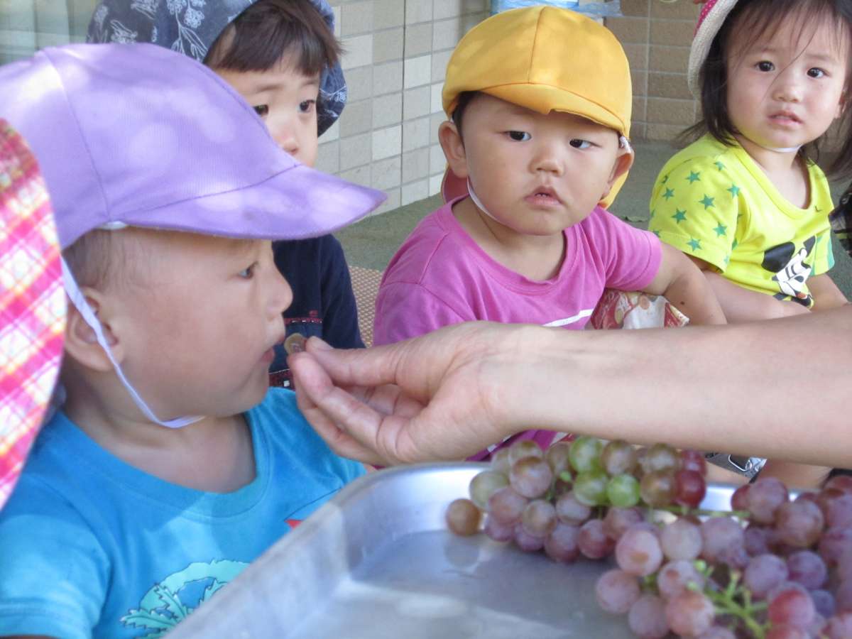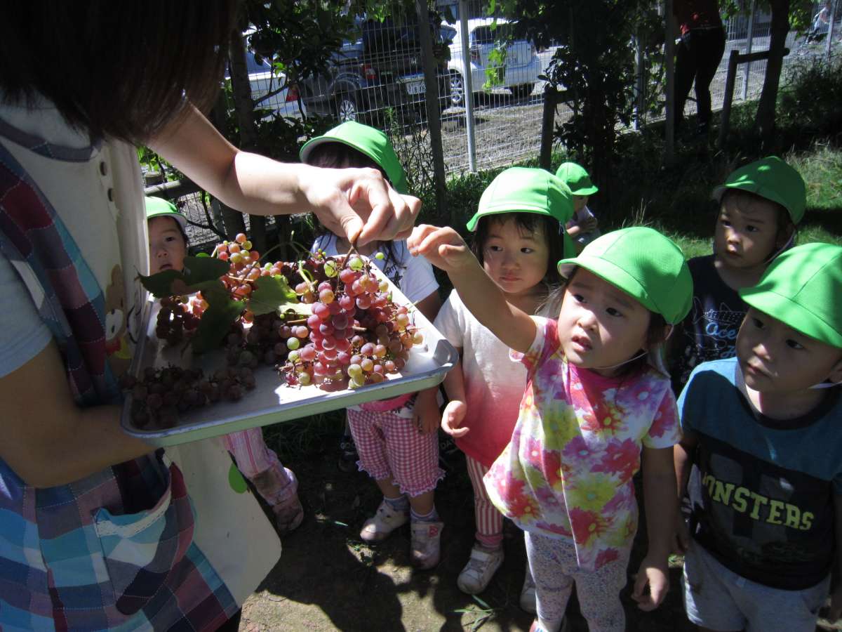 今日は、園庭のぶどう狩りの様子をお知らせ致します。