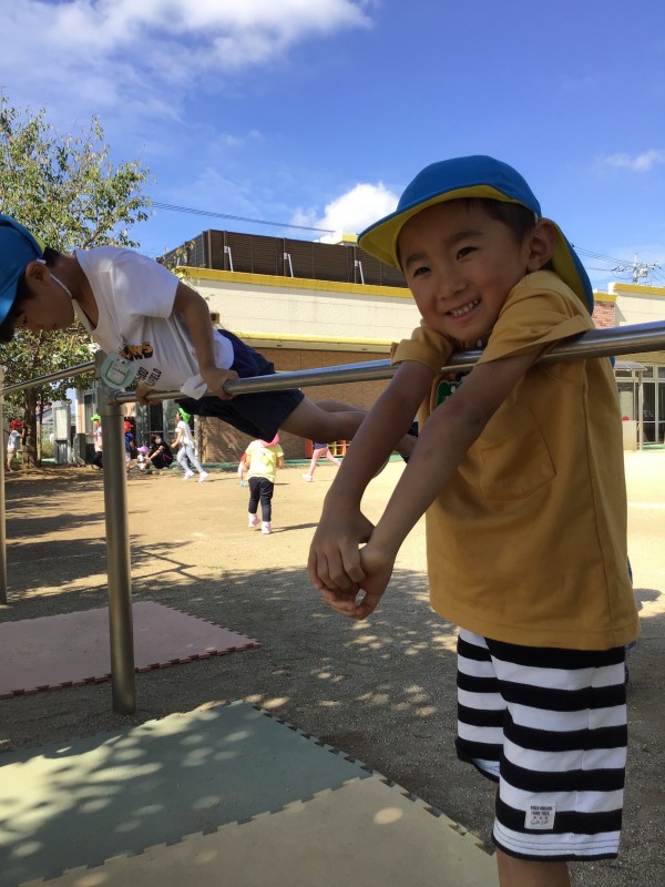 こんにちは(^^)/ 志木市にある認可保育園 こどもの家・志木中宗岡です。 空が高くて気持ちいい~季節ですね。 今日は鉄棒の練習?あそび?をしているばら組(4歳クラス)の様子をレポートします。