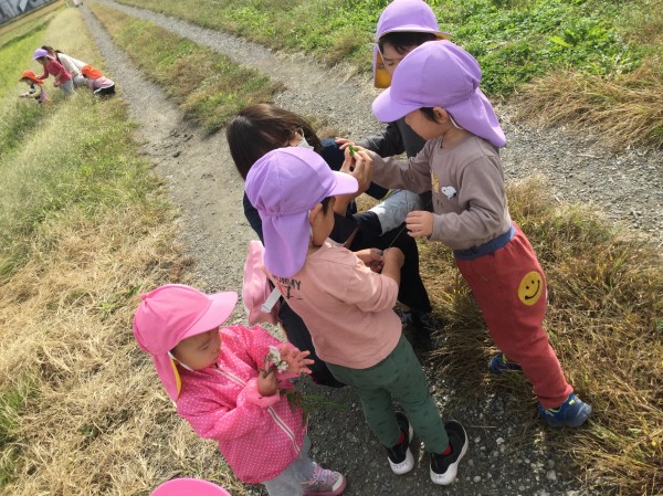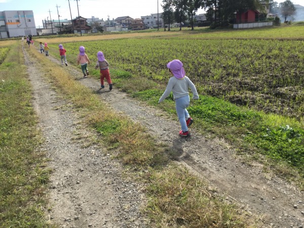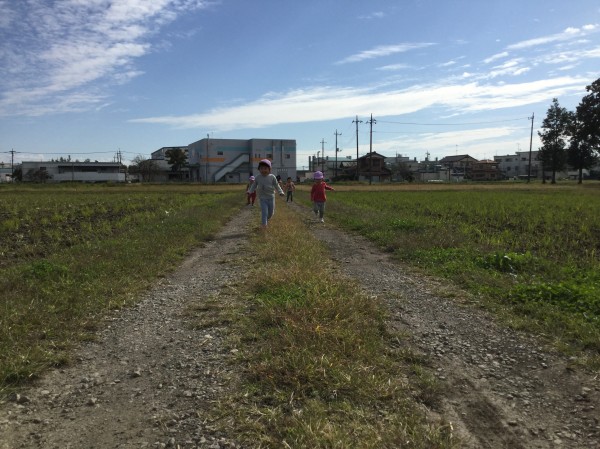 保育園の周りには自然が沢山あり、今日はその中のひとつの田んぼへお散歩した様子を紹介します。