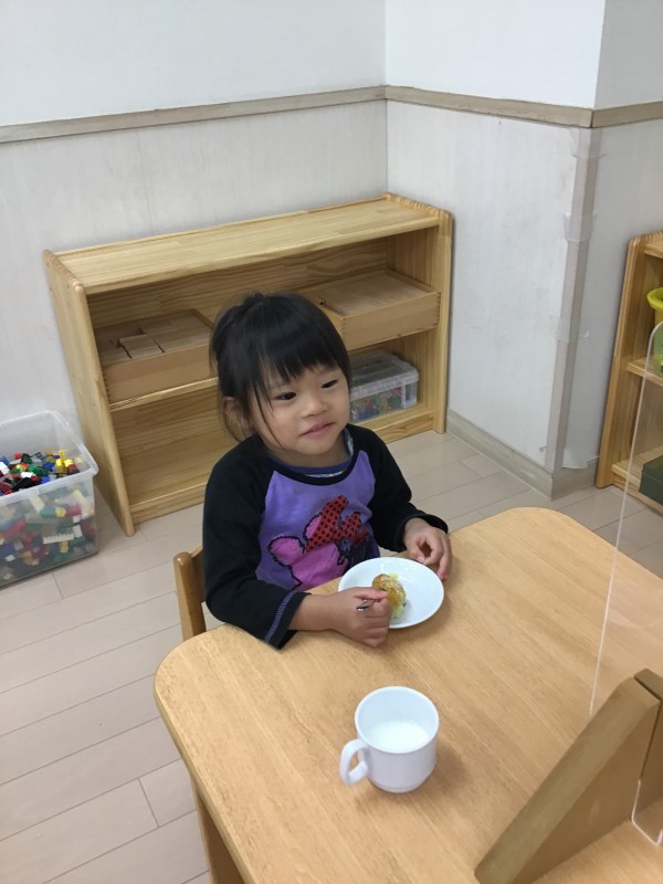 秋らしい素敵でおいしいおやつの紹介でした。みなさんにもご馳走したかったです。ひとつひとつ丁寧に作ってくれた給食の先生、ありがとうございます!!また、楽しいおやつをお願いします(#^^#)