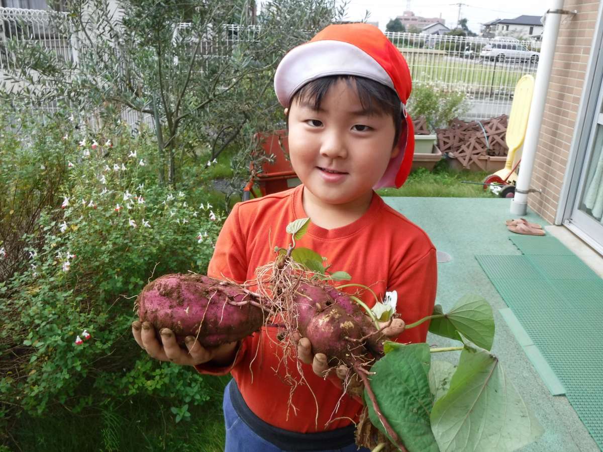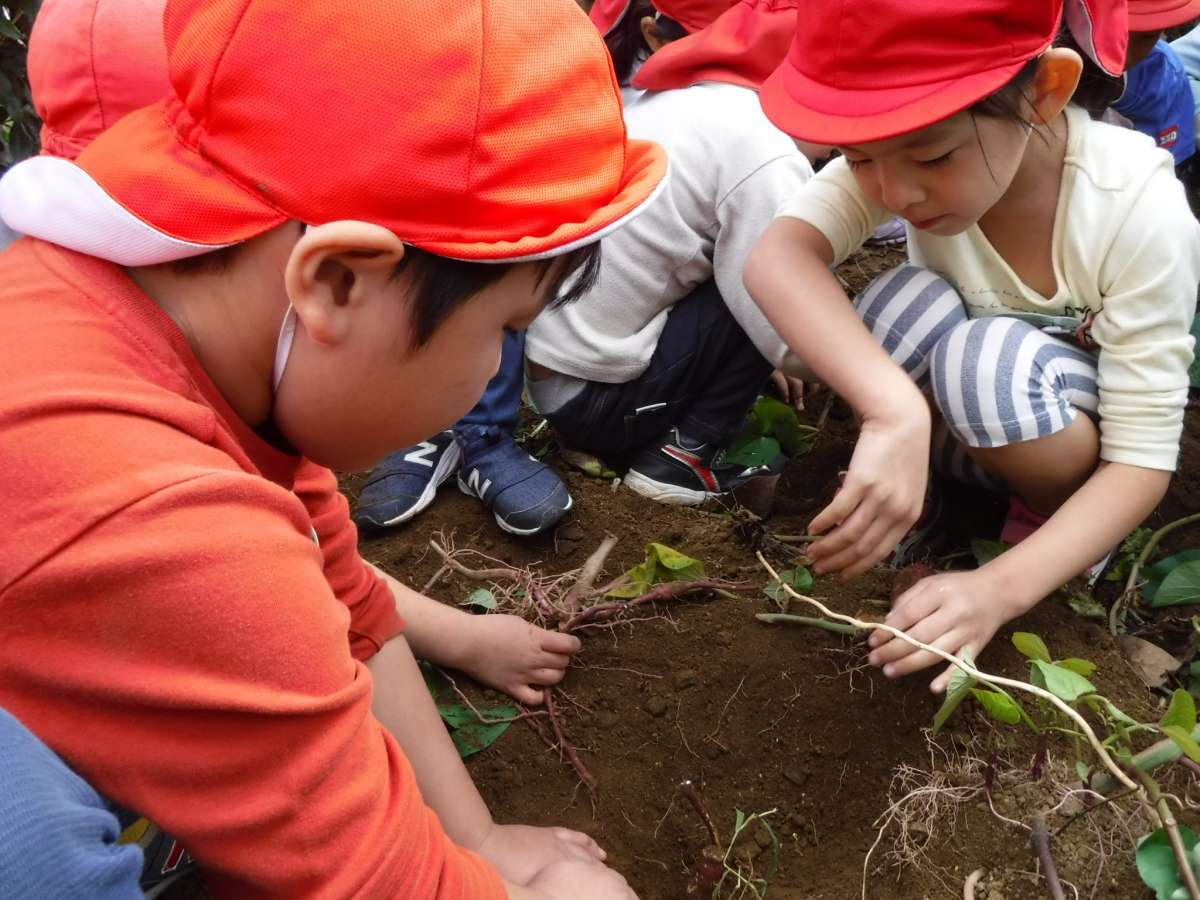 園庭の端っこにある小さな畑でのいもほり大会!!