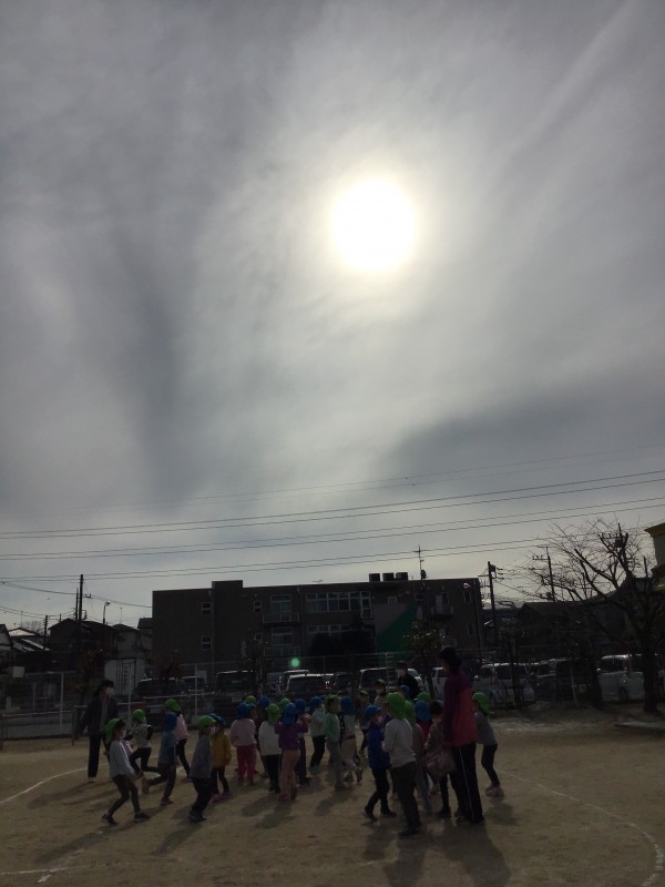 今日は、晴れているけど、雲が太陽にかかって不思議な天気でした。明日は、いつもの保育園ブルーの青空を期待します!!