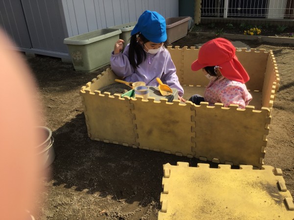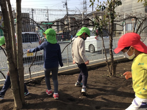 こどもの家保育園には立派な桜の木があります。毎年、桜の下でお花見をしたり写真を撮ったり・・・こどもたちの成長を静かに見守っている桜です。今年もつぼみが開き始めました。あたたかな春の日差しをあびながらあそぶ、こどもたちの様子をお伝えします。
