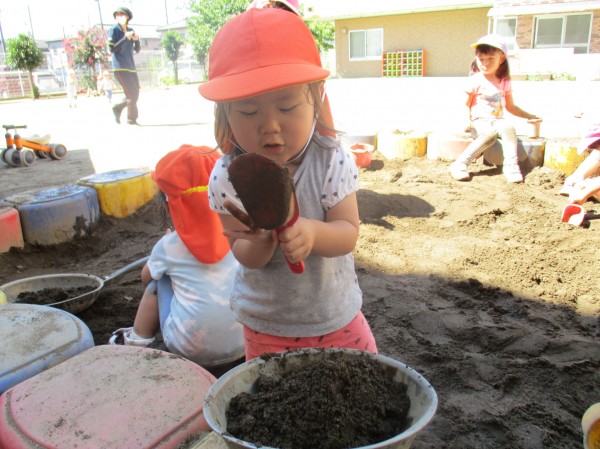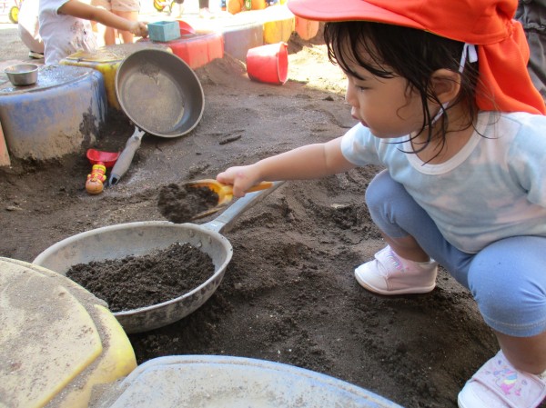 たくさん体を動かした後は、ゆっくりお砂場遊び。