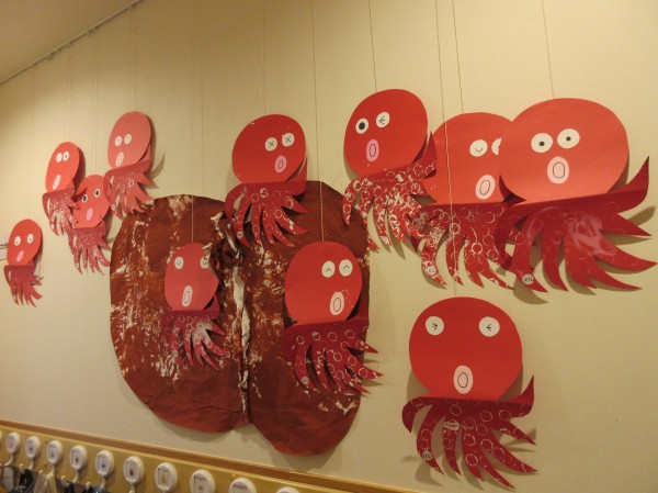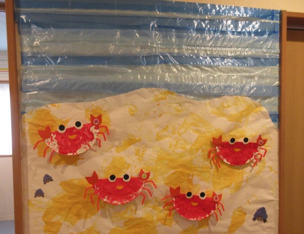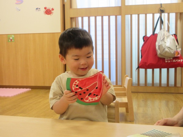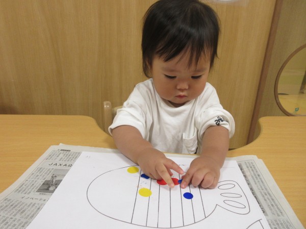 0歳児だって…夏祭りの準備を頑張りましたよ‼魚つりの魚を作りました。