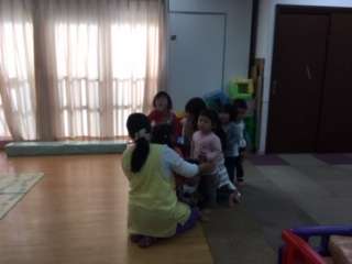 不審者の訪問(?)にも、こどもたちはしっかり保育士の話を聞いて落ち着いて集まり、備えることができました。大人の方が、訓練だとわかっていても不審者役に対応し心臓がばくばくしてしまいました。