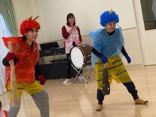 保育園には保育士・園長扮する赤おに・青おにが登場!!