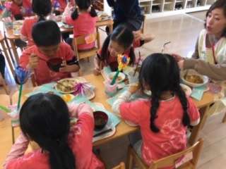 給食は、ゆり組だけのさよならパーティーです。