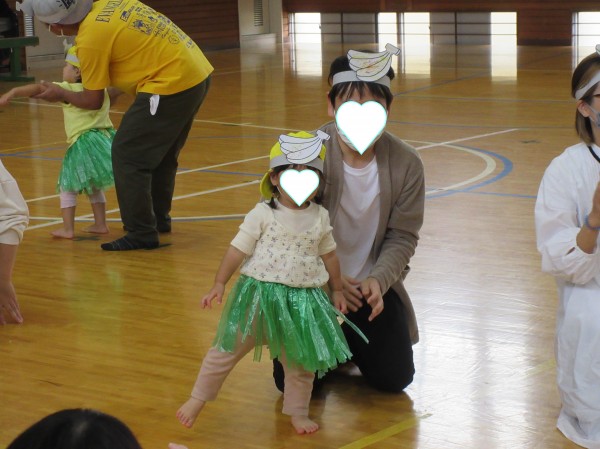 1歳児クラスはバナナになってお尻フリフリしたり、体をゆらゆらとダンスを楽しみました‼
