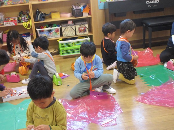 幼児組はスタンプラリーをしながら、自分で衣装作りをしたり、お菓子をもらいに回ったりして楽しみました‼
