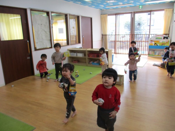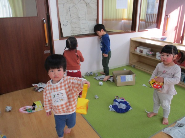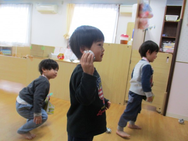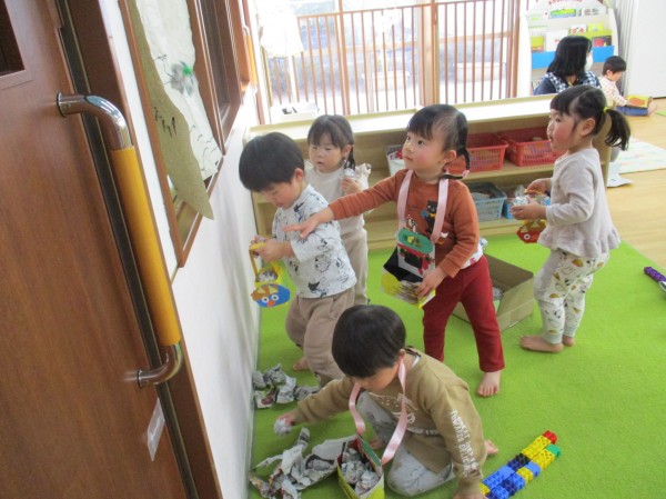 すぐに仲良くなって元気に豆まきが始まります(*^▽^*)