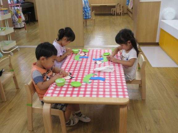 保育園の壁に大きな竹が貼られました。「これ なに?」「竹?」子どもたちは興味津々。「みんなのお願いを飾るんだよ」「なんのお願いをしようかな?」と優しく声をかける保育士に「わたしは〇〇!」「ぼくは□□!」とお願いごとが尽きないようです☆