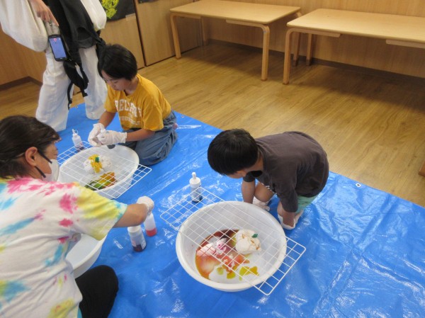 こんにちは‼たんぽぽ海神町南保育園です。いつも保育園ブログをご覧いただきありがとうございます。今回は夏祭りで行ったタイダイ染めの様子を掲載いたします。