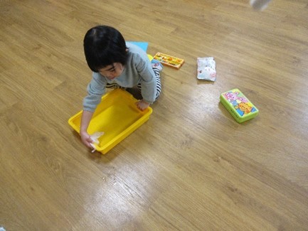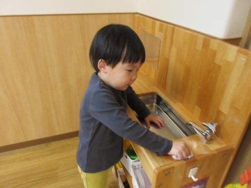 おもちゃ拭きや絵本の整理整頓は子どもたちの方から気づいてお掃除を始めていて感心です。