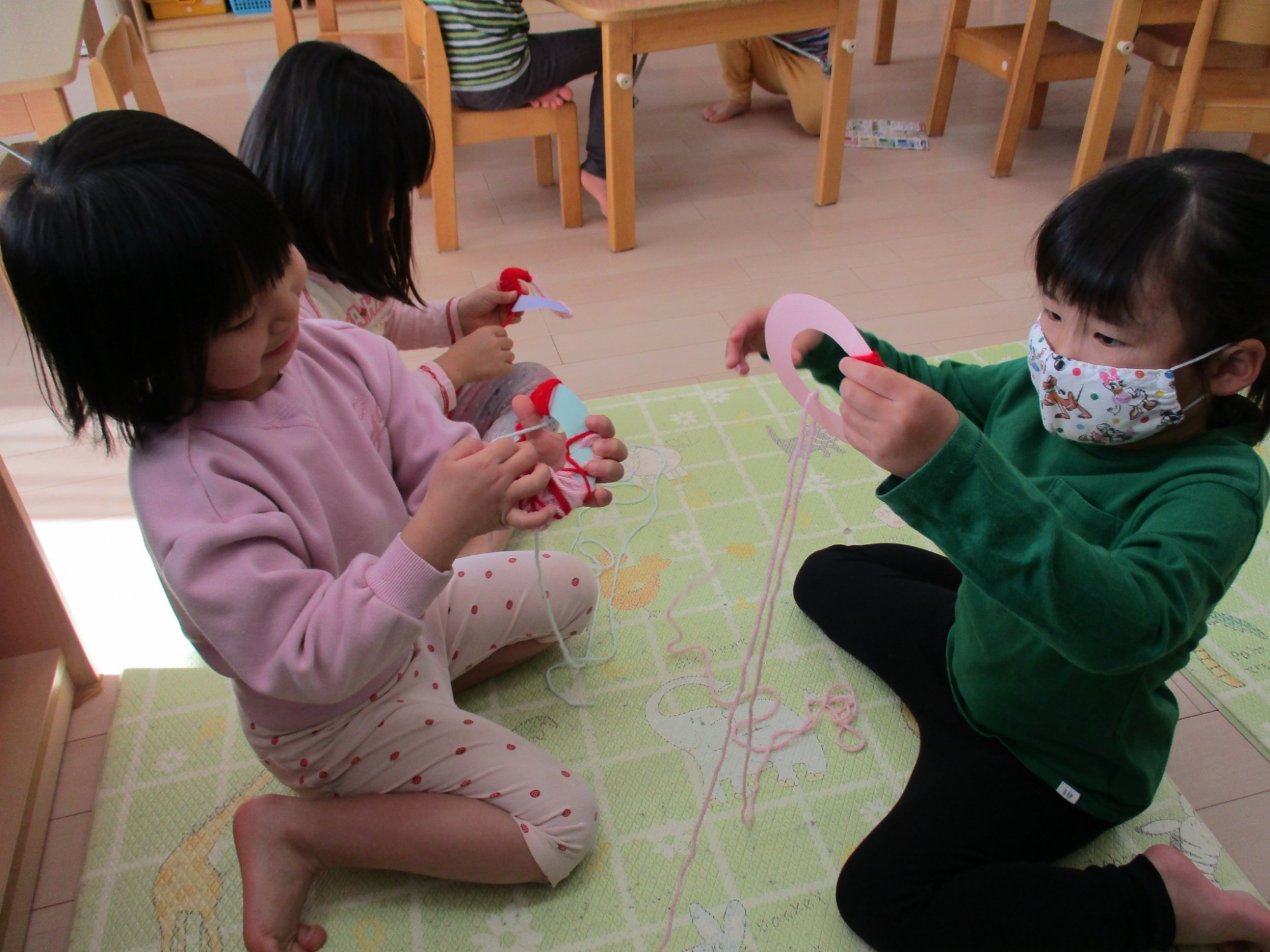こどもの家・志木中宗岡 楽しいオーナメント作り☆ミ すみれ組(2歳児クラス)