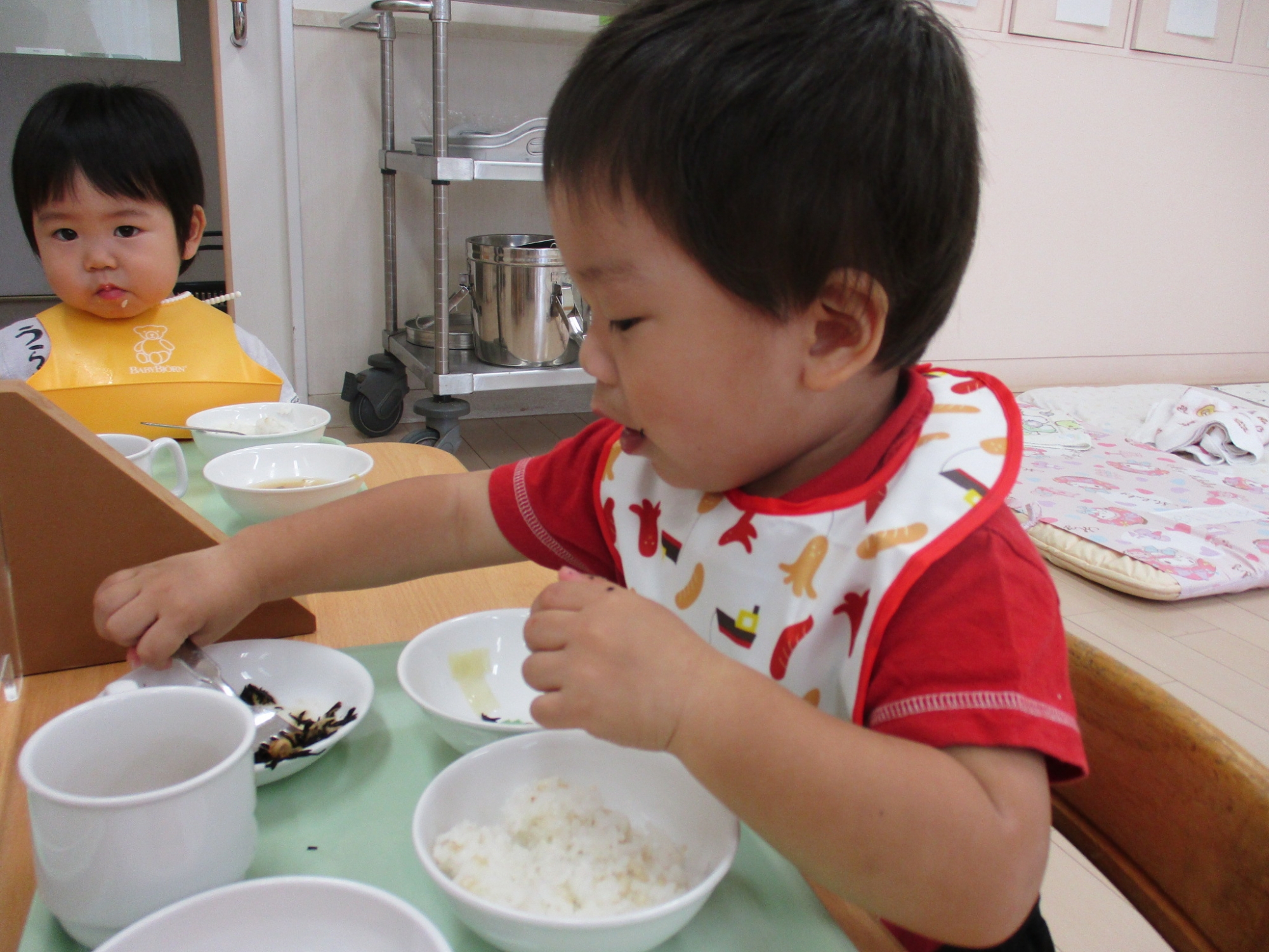 こどもの家・志木中宗岡 今日の給食の様子(^^♪ たんぽぽ組(1歳児クラス)