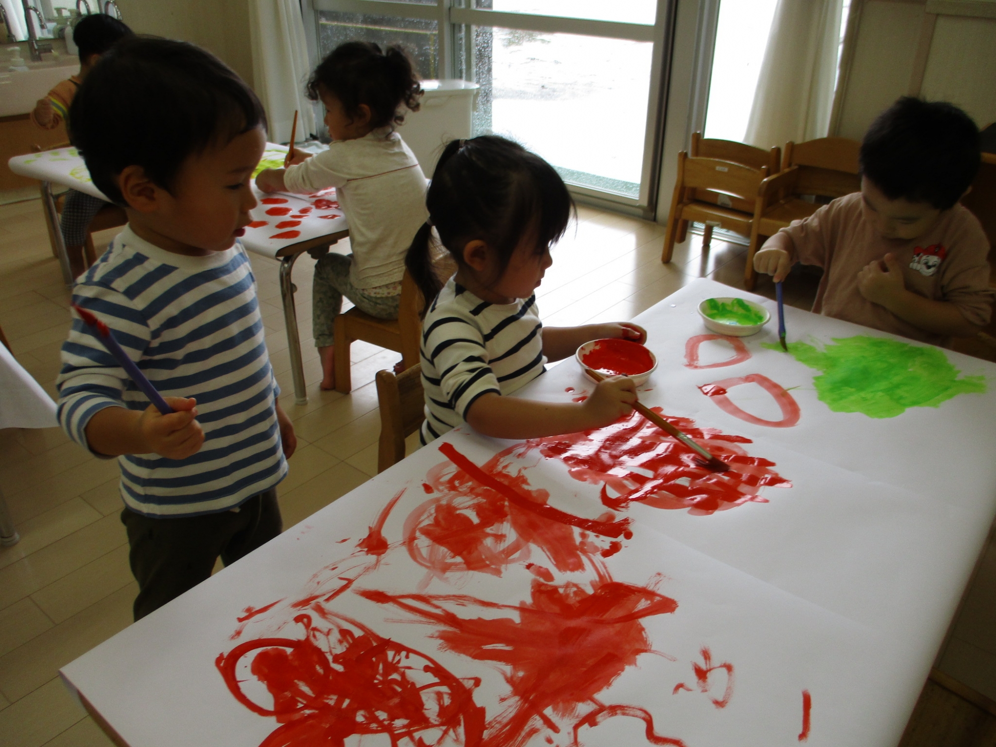 こどもの家・志木中宗岡 絵の具遊びからのおばけ♬ すみれ組(2歳児クラス)