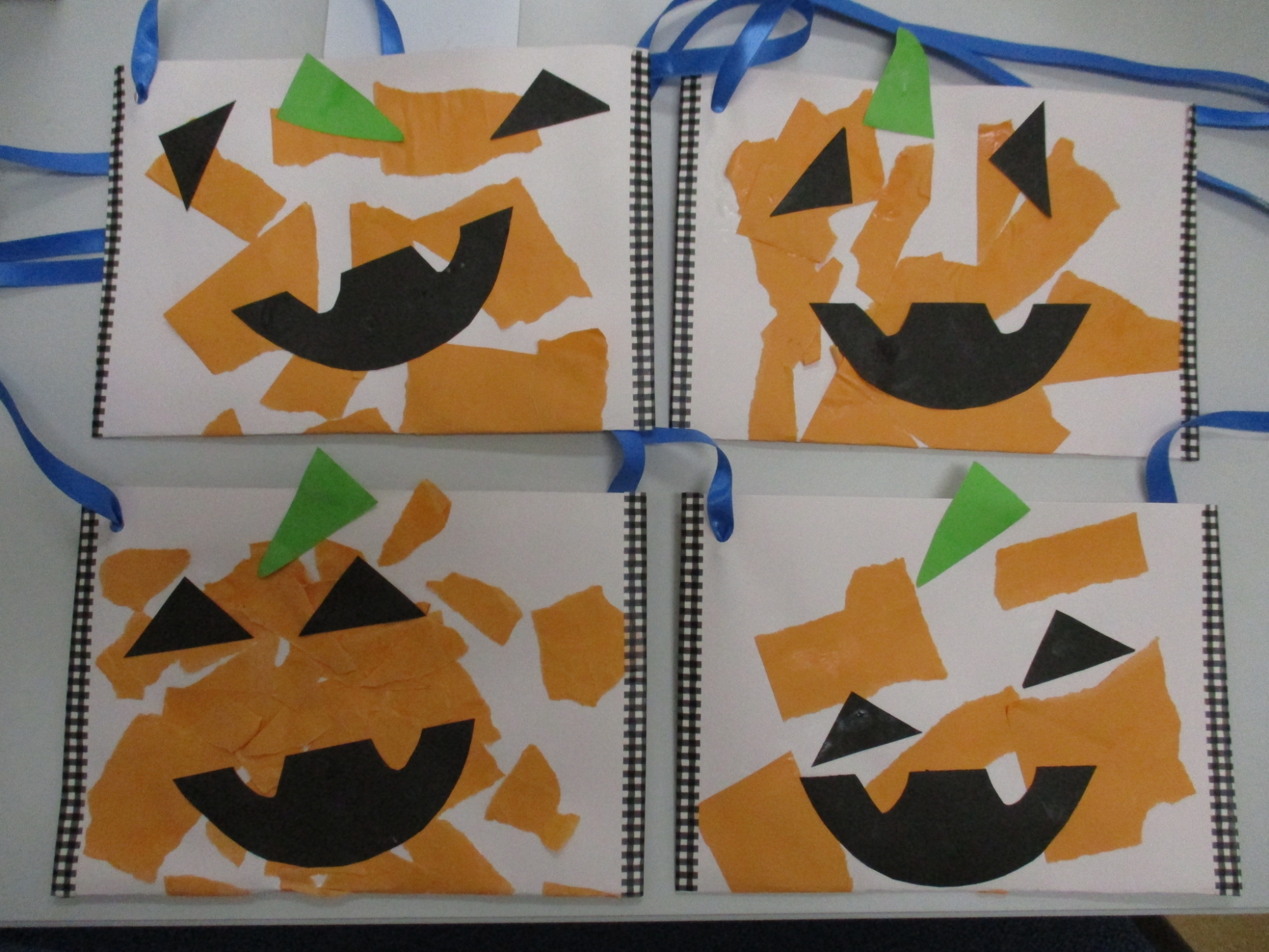 こどもの家・志木中宗岡 かぼちゃのおばけのバック作り(^^♪ すみれ組(2歳児クラス)