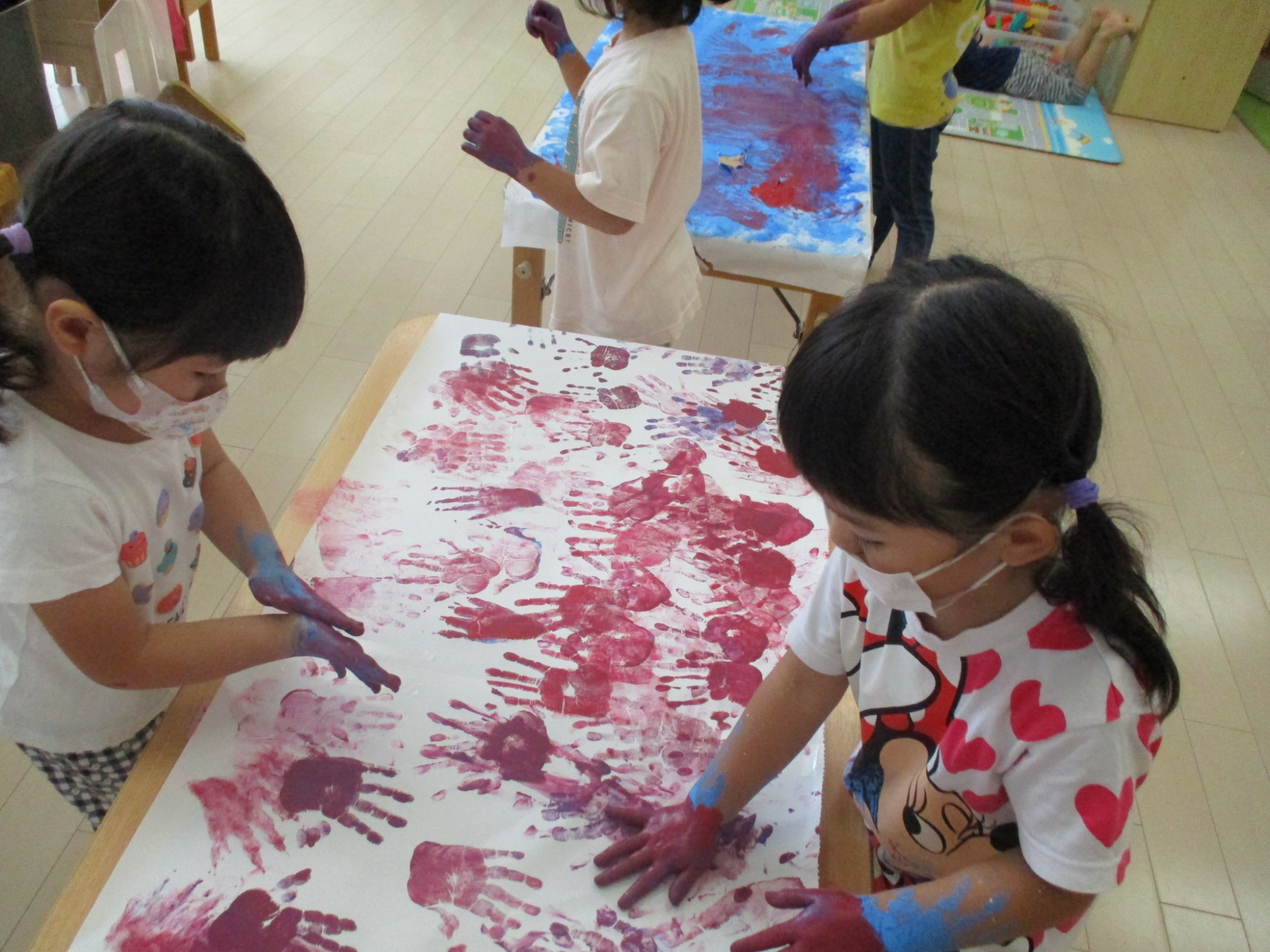 ハンドペインティングを楽しみました♪(3歳 さくら組) こどもの家・志木中宗岡