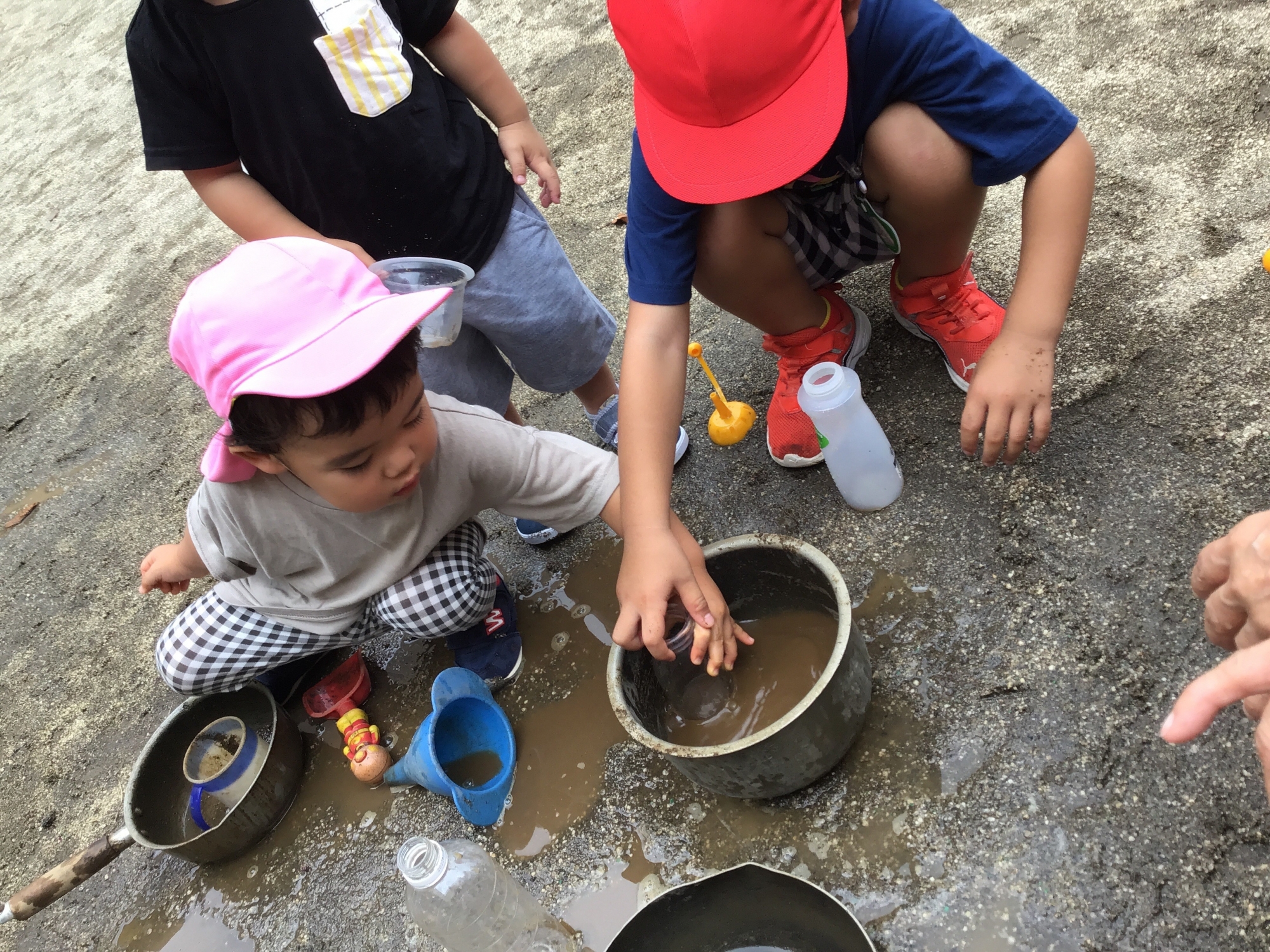こどもの家・志木中宗岡 すみれ組(2歳児クラス)水遊び楽しいな。