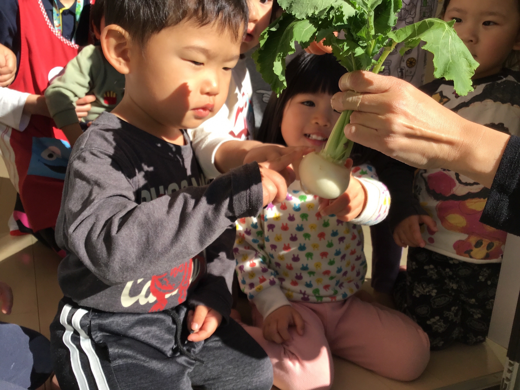 こどもの家・志木中宗岡 絵本給食-さくら組(3歳)のかぶ洗い