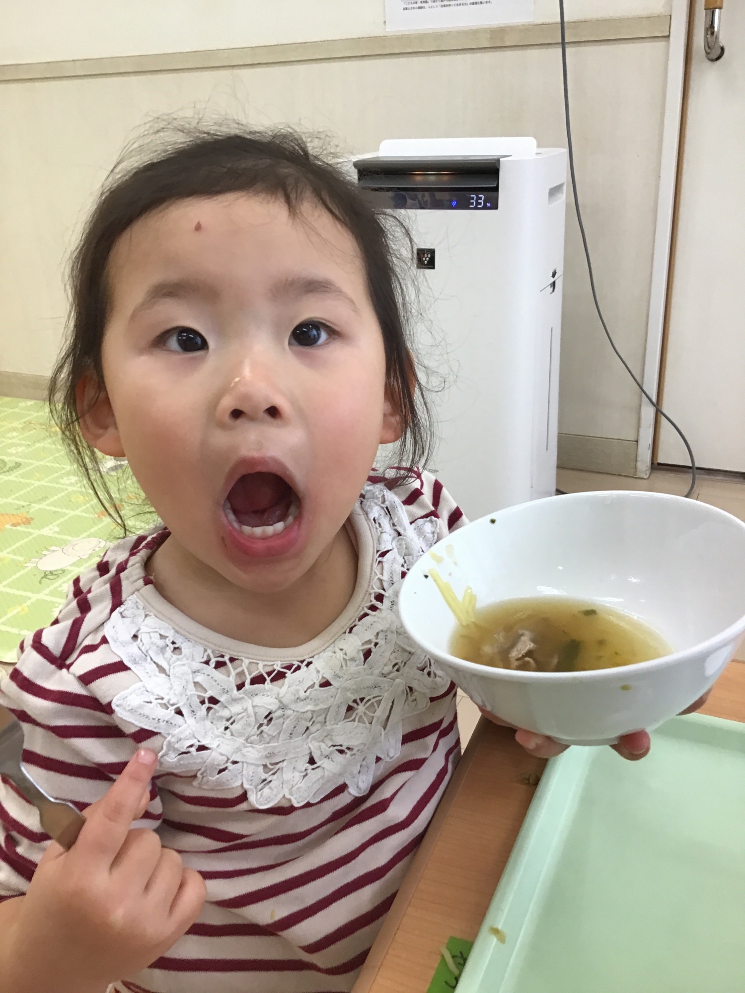 こどもの家・志木中宗岡 今日の給食の様子-すみれ組(2歳児)クラス