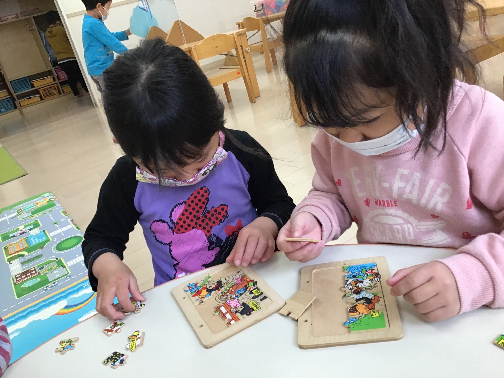 こどもの家・志木中宗岡 室内遊びの様子-さくら組(3歳)