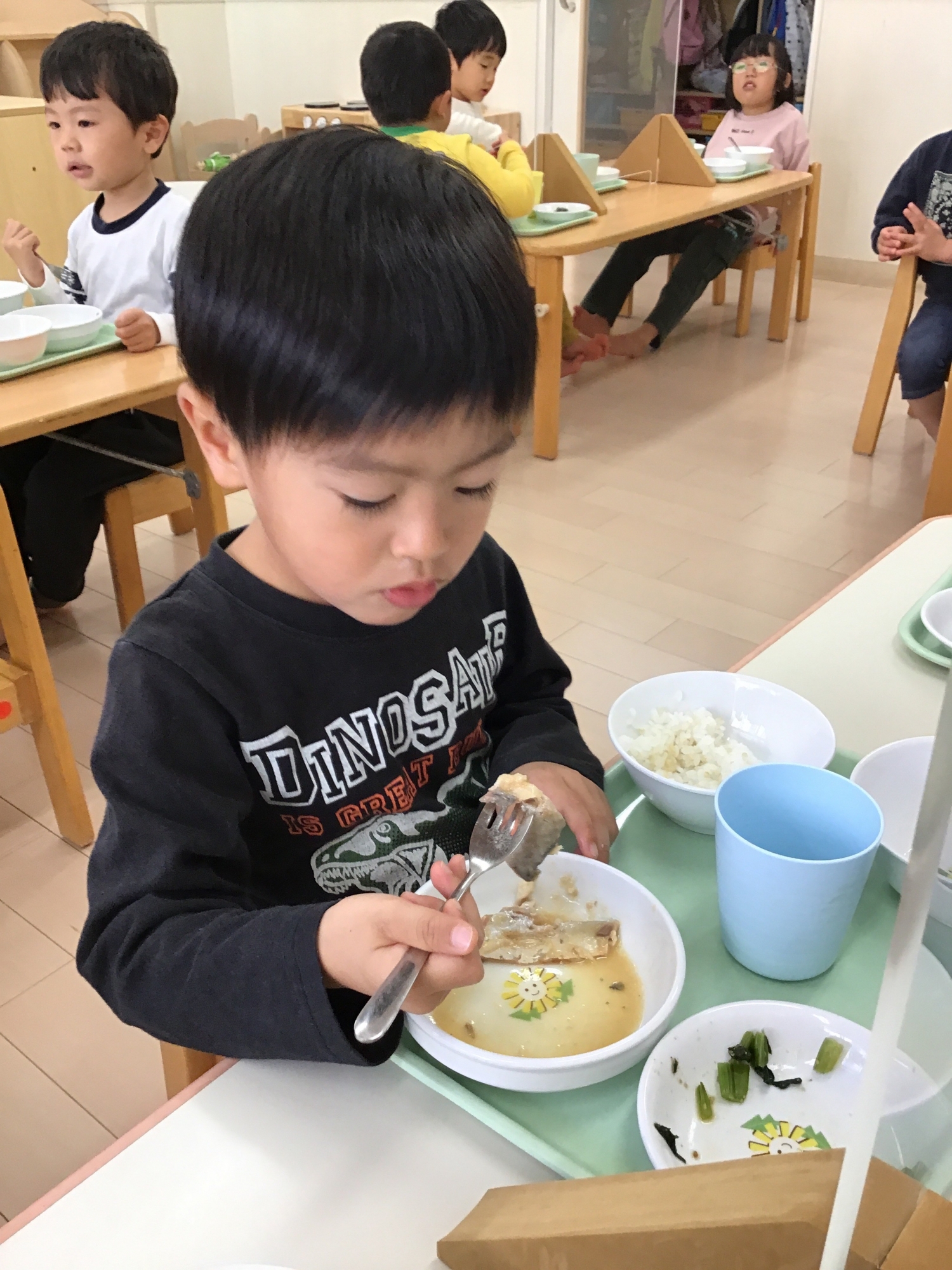 こどもの家・志木中宗岡 さくら組(3歳クラス)給食の様子