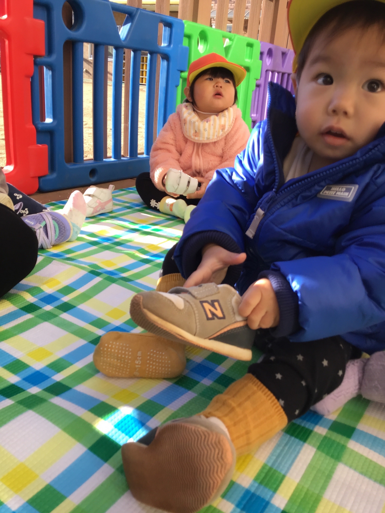こどもの家・志木中宗岡 0歳クラス・気持ちは靴も履けちゃうよ~!!