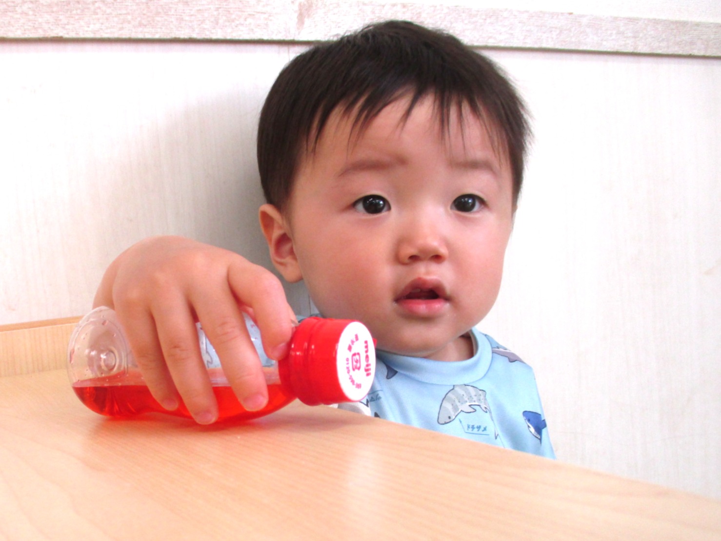 こどもの家・志木中宗岡保育園 どのボトルが好き?あひる組(1歳児)