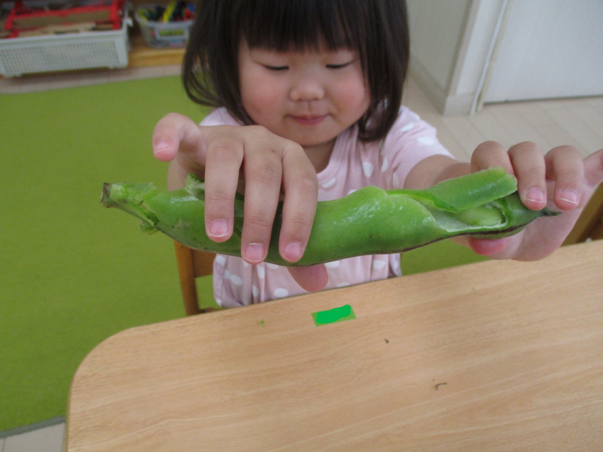 こどもの家・志木中宗岡 食育 新玉ねぎの皮むき(らっこ組)