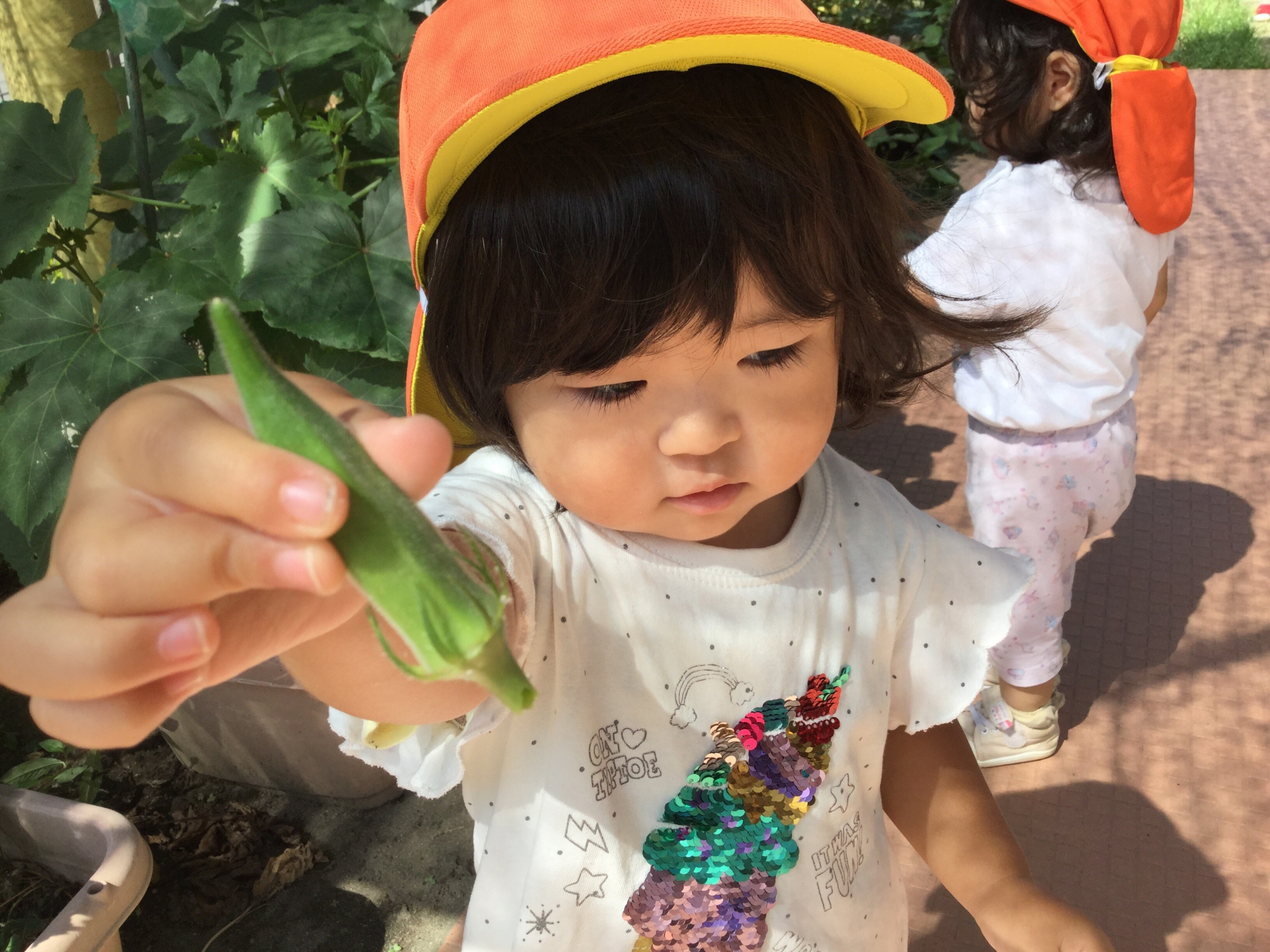 こどもの家・志木上宗岡~オクラを収穫しました~