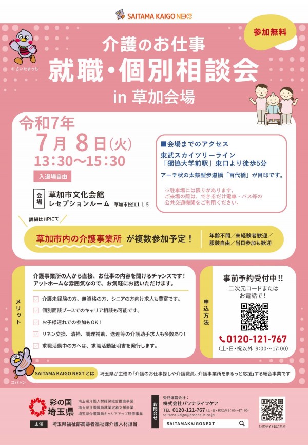 草加市文化会館で開催する【介護のお仕事就職・個別相談会】にALSOK介護が参加します。