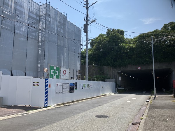 猛暑の中、ファシリティ開発部の方が建築現場訪れ、