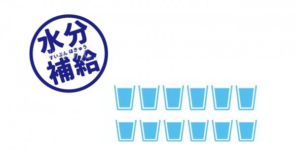 「熱中症にならないためにも「水分補給」をしましょう」というフレーズを