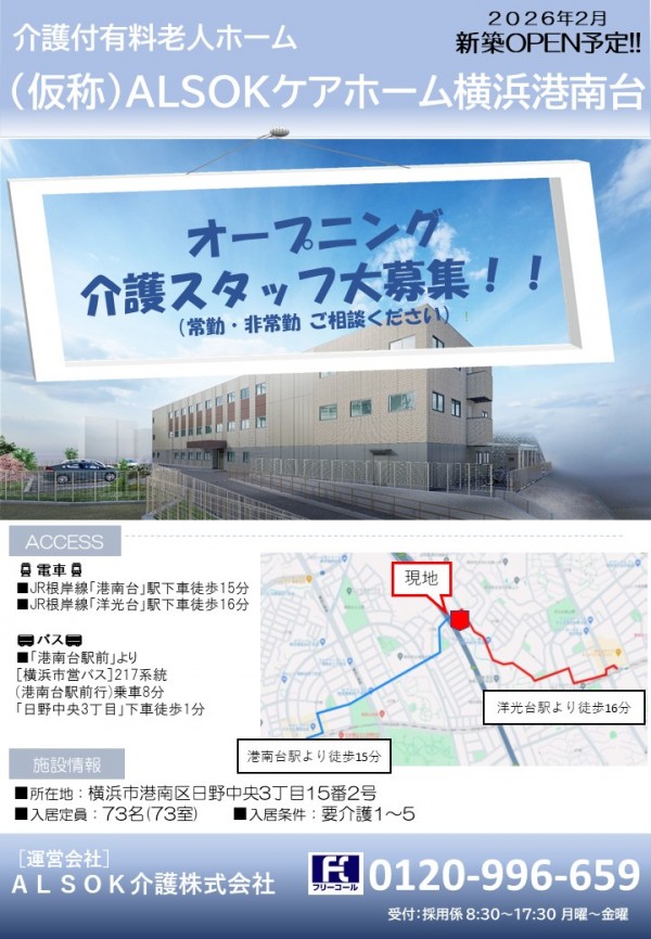 ★2026年2月新築OPEN予定★介護付有料老人ホーム『(仮称)ALSOKケアホーム横浜港南台』★第4弾!
